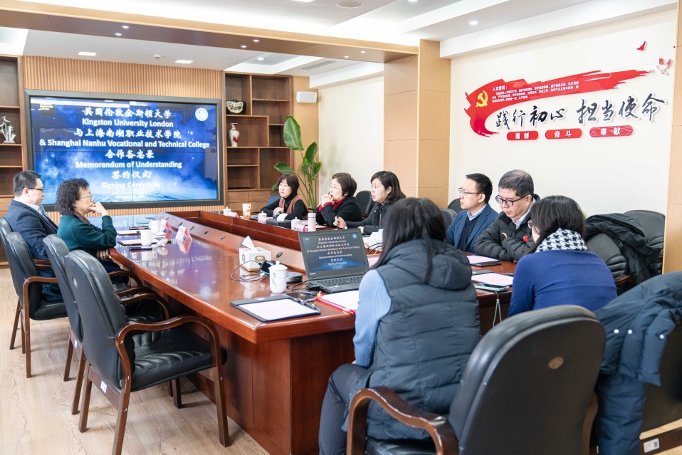 为进一步加强国际交流合作,推进上海南湖职业技术学院与发达国家高校开展合作项目,12月27日下午,英国伦敦金斯顿大学与上海南湖职业技术学院合作备忘录签约仪式顺利举行。