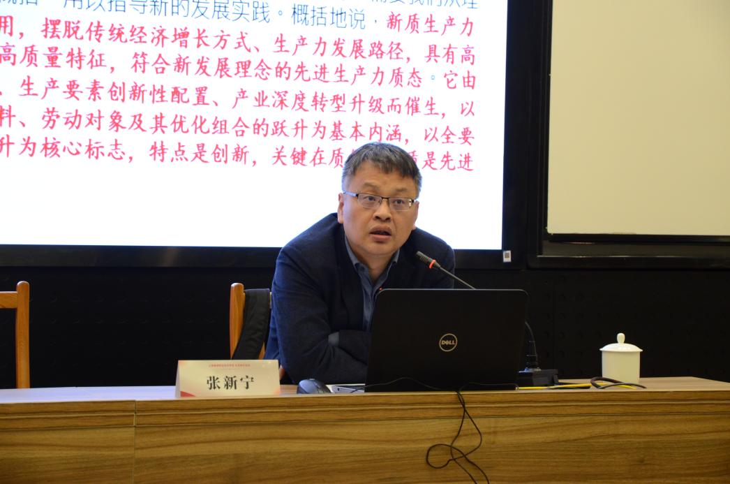 张新宁教授从今年两会热议的新质生产力讲起,剖析了发展新质生产力是推动高质量发展的内在要求和重要着力点以及高质量的教育支撑引领新质生产力发展的重要性,带领全体教师对习近平总书记教育重要论述的战略视野、内容体系、重大意义进行了深入解读,同时对社会主义现代化建设的教育、科技、人才战略,多重系统集成功能进行了深度阐释,对理解新时代科教兴国战略的重大意义,围绕怎样加快建设教育强国,怎样加快建设科技强国,怎样深入实施新时代人才强国战略的原则、根本任务、重点工作进行了详细讲解。