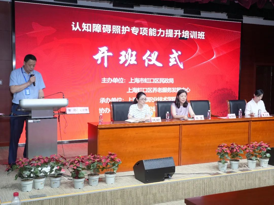 上海市虹口区养老服务发展中心主任王青、上海市虹口区养老服务发展中心沈瑜,上海南湖职业技术学院党委副书记、院长朱建柳,上海南湖职业技术学院继续教育学院交职培训中心主任黄海,以及上海南湖职业技术学院智慧养老专业带头人夏凡林等领导和嘉宾出席了开班仪式。开班仪式由黄海主持。