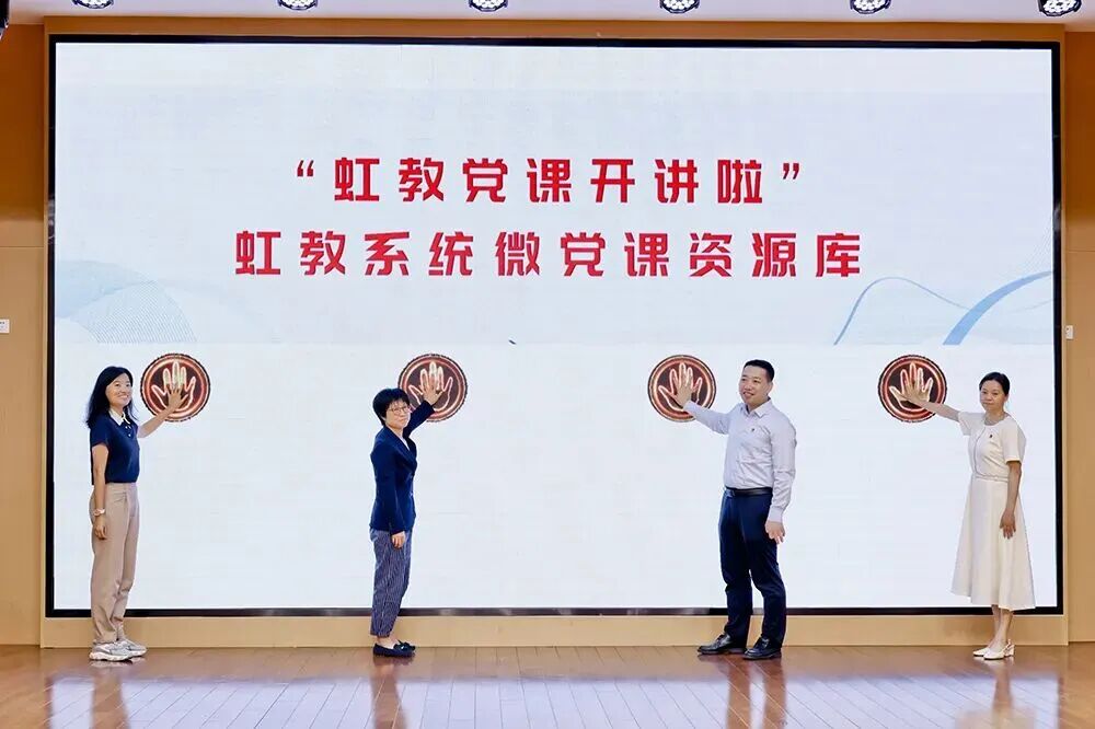 活动现场还进行了虹口区教育系统微党课资源库的发布仪式,裘燕南作为党员教师代表,与市教卫工作党委组干处副处长朱晨光、区教育工作党委副书记陈薇共同发布“虹教党课开讲啦”——虹教系统微党课资源库。该资源库旨在整合区域内优质党课资源,为广大党员教师提供学习交流、借鉴提升的平台。