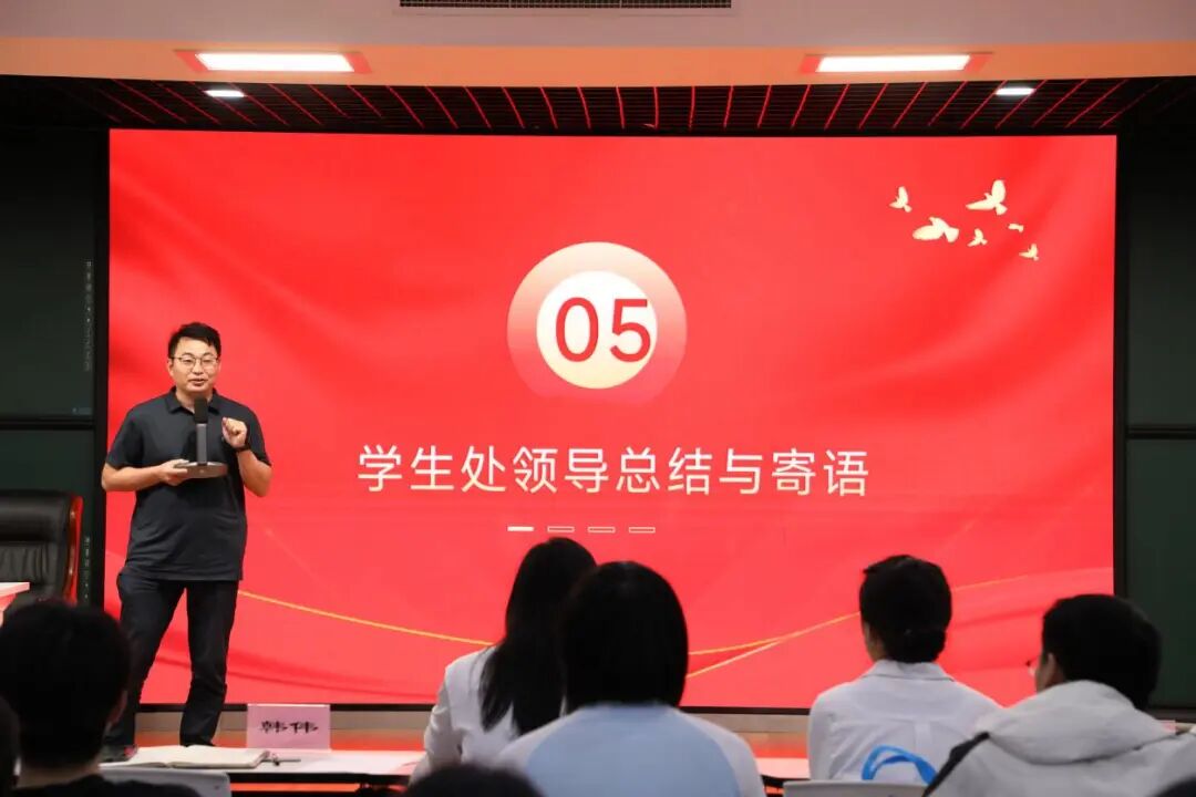 活动最后,学生处副主任韩伟为本次宣讲会作总结讲话。他高度评价了“青思青享”宣讲团的理论水平和宣讲魅力,并感谢“三五融合”团队为筹办此次活动所付出的努力。韩伟强调,中国式现代化征程离不开青年的参与,精神共同富裕更需要青年的创造。他勉励全体同学:“希望你们能将今天的所听、所感、所思转化为明日所有的行动,在南湖职院这片沃土上,锤炼技能,丰盈精神,成长为无愧于时代的新青年。”