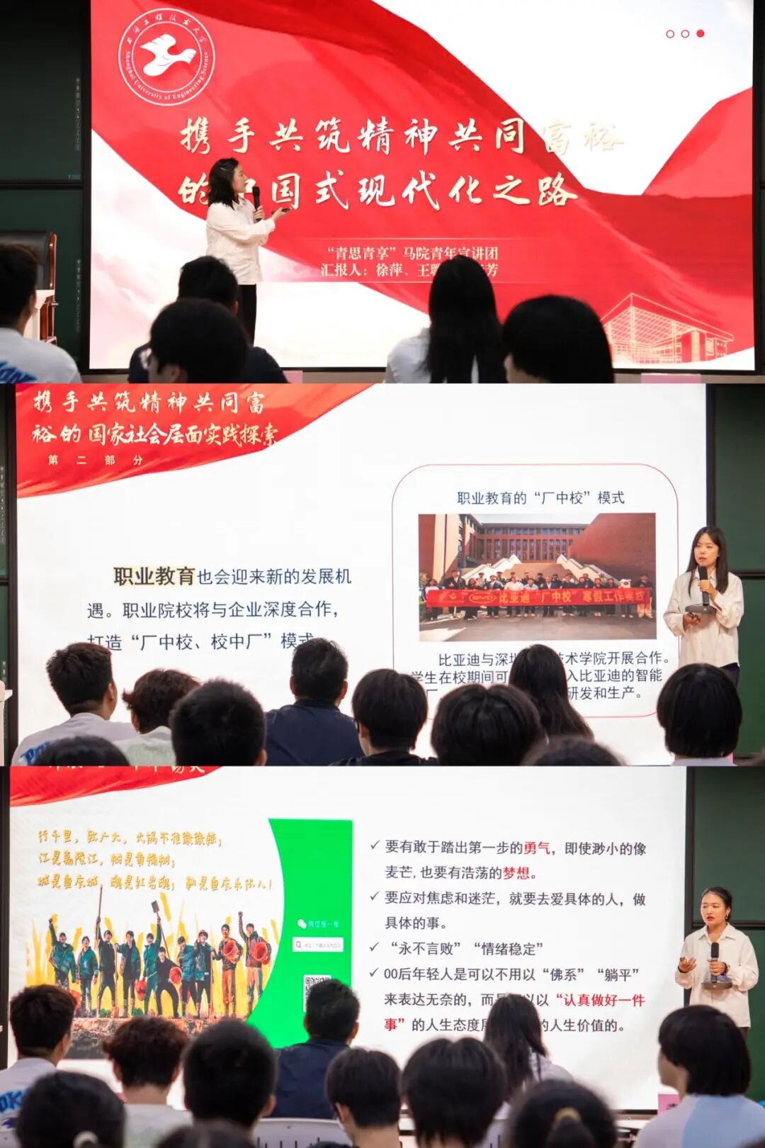 本次宣讲会在热烈而持久的掌声中圆满落下帷幕。同学们纷纷表示,通过此次学习,不仅对“中国式现代化”这一宏大概念有了更真切的理解,更对自身肩负的时代责任有了更清晰的认知。未来,南湖职院“三五融合”团队将持续开展丰富多彩的育人活动,搭建更多理论与实践结合的育人平台,助力南湖学子以更加饱满的精神状态和更加坚实的行动步伐,在实现精神共同富裕与中国式现代化的伟大征程中,书写属于自己的青春华章。