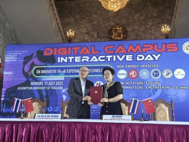 为深入贯彻国家“一带一路”倡议,落实《推进共建“一带一路”教育行动》和《教育现代化2035》战略部署,推动职业教育“走出去”,2025年7月20日至24日,上海南湖职业技术学院党委副书记、院长朱建柳率团一行赴泰国曼谷,围绕智能新能源汽车领域产教融合及国际人才培养机制建设先后访问易三仓大学(Assumption University)及上汽正大有限公司(SAIC Motor-Thailand Co., Ltd.)。此行是对同年4月泰方代表团回访的深化落实,旨在推进框架协议的具体实施。