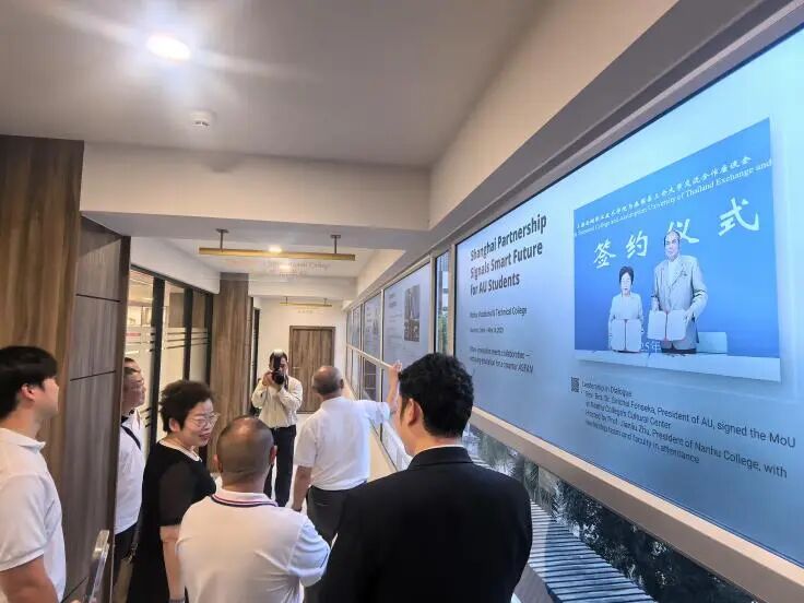 此次出访是学院建设首批“全国智能新能源汽车行业产教融合共同体”背景下的重要国际拓展行动。重点围绕中泰智能新能源汽车技术人才联合培养、课程互认、学位衔接、实习实训基地共建等内容与泰方深入对接。在今年4月双方签署合作框架协议基础上,正式签订《国际教育项目合作协议》,明确建立“上海南湖职业技术学院—泰国易三仓大学联合培养机制”,形成以专本硕贯通为主线,硕士、博士和短期游学与教师研修为补充的多层次国际合作项目体系。