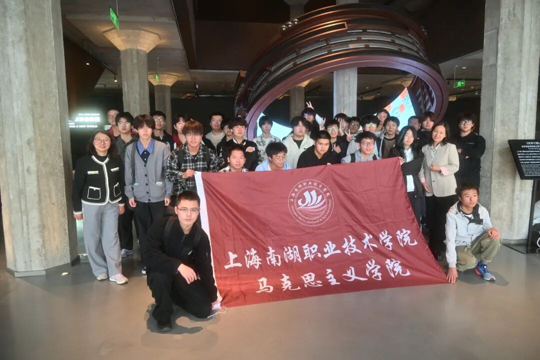 近日,为将思政教育与专业实践深度融合,打破课堂教学边界,上海南湖职业技术学院马克思主义学院教师余文娟带领新能源汽车2251和2252班学生前往世界技能博物馆开展思政课实践教学活动,班主任黄海霞、张艳萍全程陪同参与。这场集聆听讲解、观摩展品、动手体验于一体的实践教学活动,让学生在行走的课堂中感受技能的魅力,推动思政理念与专业认知双向提升。