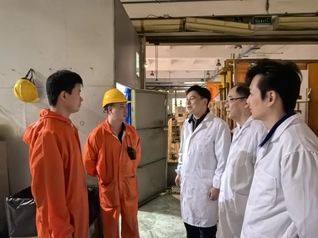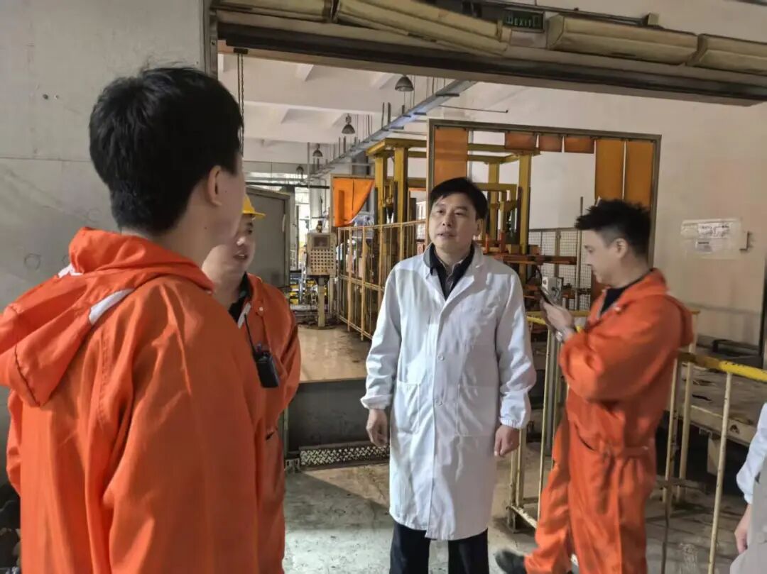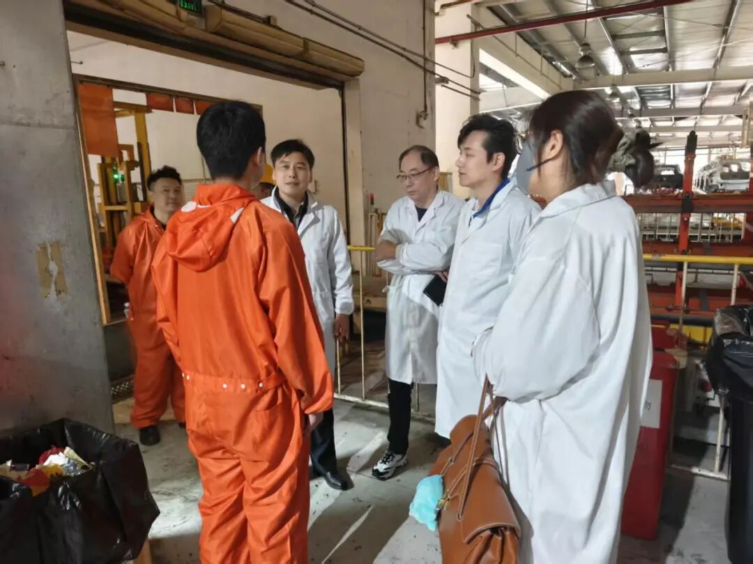 此次调研的另一重要行程,是看望分属油漆车间生产与维修两条工作线的实习学生。在生产现场,朱列主任详细询问了新能源2331班李家乐同学的实习情况。“这里的实操机会特别多,能学到很多课本上没有的技术,食宿便利又实惠,工作环境也特别好。”李家乐同学的话语里满是对实习岗位的认可。