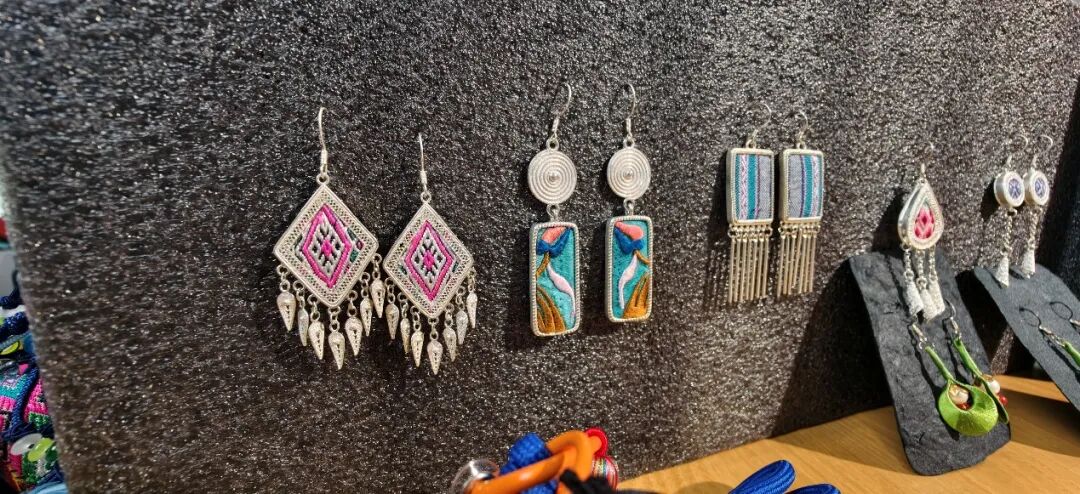 随着现场氛围愈发浓厚,专场直播准时拉开帷幕。镜头前,主播们围绕展示的耳环、香囊、戒指、挂件等侗绣文创产品,逐一讲解设计细节:耳环的细腻针法如何还原传统技艺,香囊的经典纹样承载着怎样的文化寓意,戒指的民族元素如何与现代审美结合,挂件又如何平衡装饰性与实用性。清晰的讲解搭配实物展示,全方位呈现了侗绣技艺的传承与创新,让屏幕前的全国观众深刻感受到非遗传承的独特吸引力。