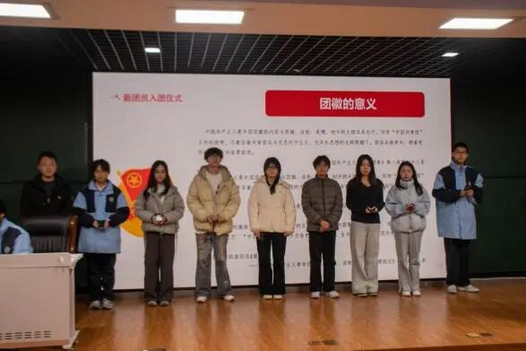 仪式在《光荣啊,中国共青团》的歌声中圆满结束。历史川流不息,精神代代相传。九十年前,爱国学子以青春热血唤醒民族觉醒;九十年后,南湖青年用铿锵誓言接续奋斗征程。此次仪式不仅是一次庄严的加入,更是一颗颗红色种子在新时代沃土中的扎根萌芽。愿全体新团员将团徽视为信仰的灯塔,将誓言化为行动的准则,在实现中华民族伟大复兴的澎湃浪潮中,勇立潮头、担当重任,以青春之我,创建青春之国家、青春之民族,让五四的火炬、“一二·九”的呐喊,在今日中国焕发新的时代光芒!