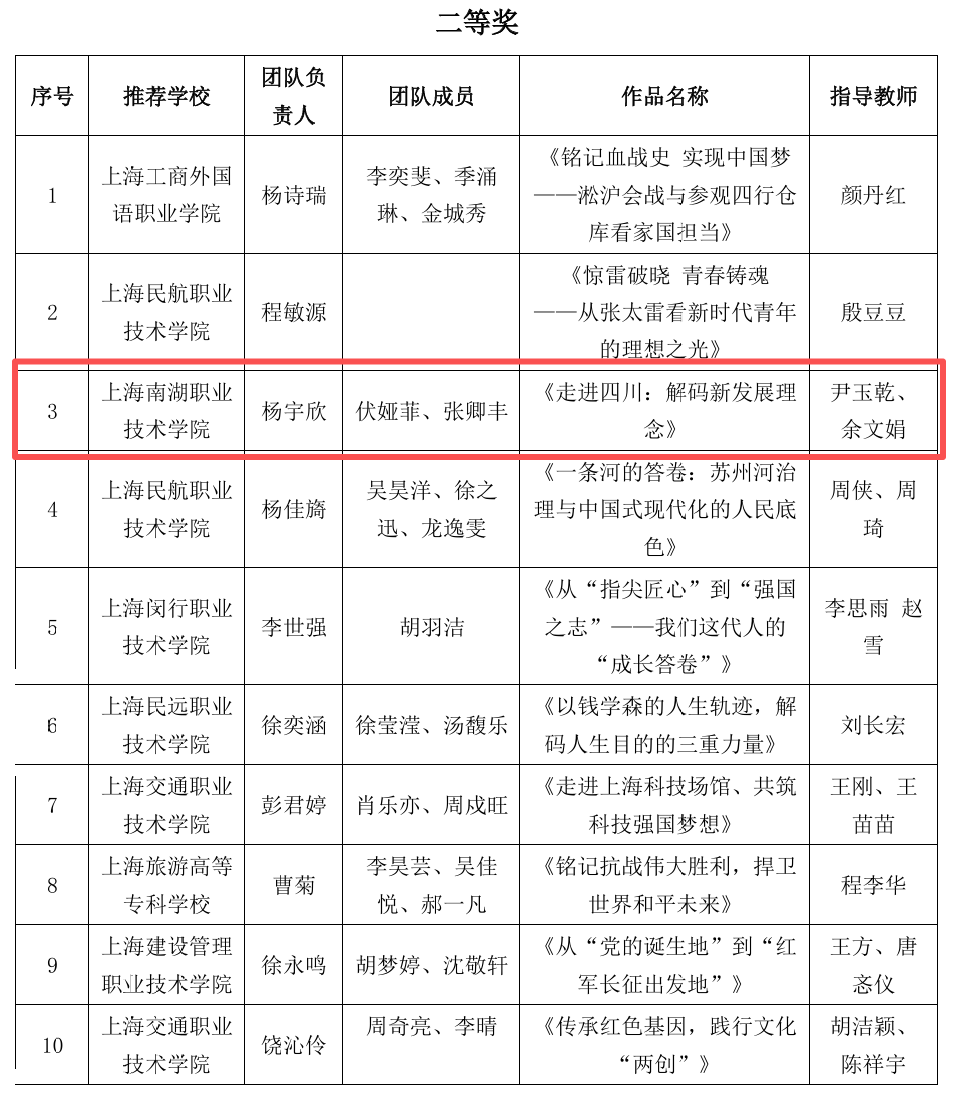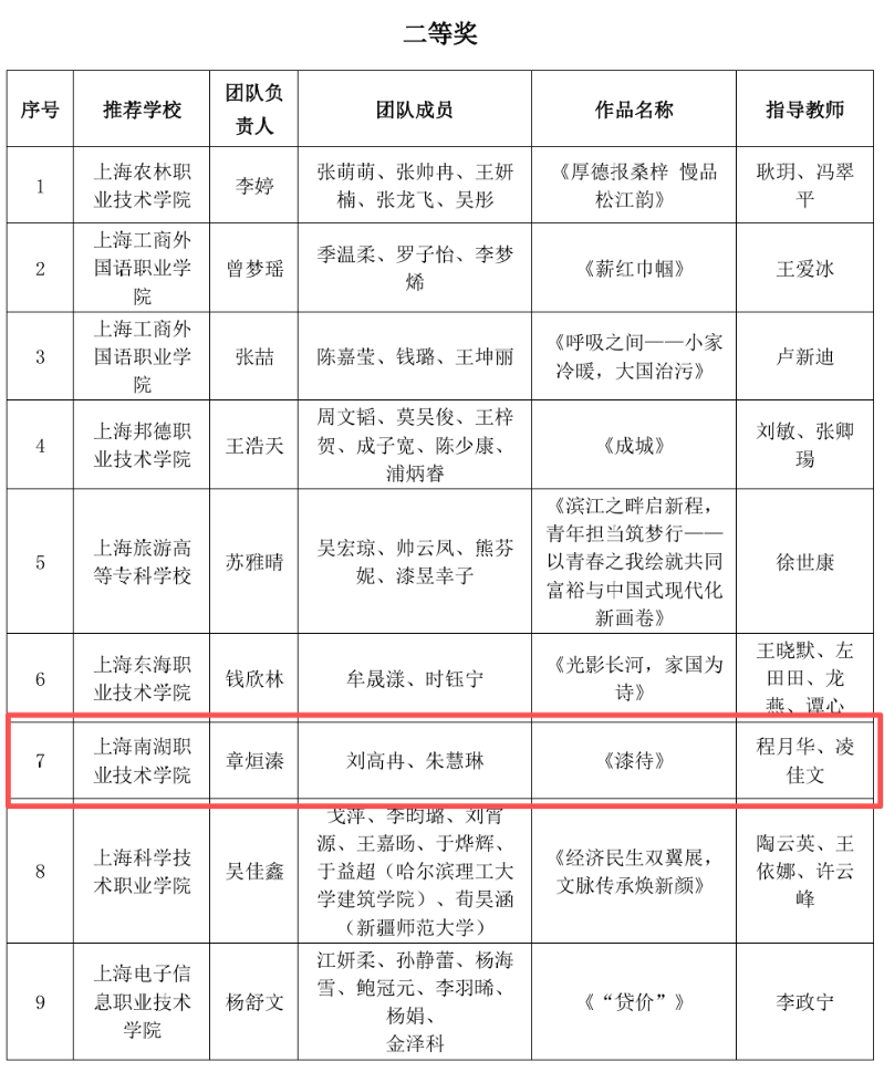 近日,由上海市职业学校思政课建设协作组、上海高职高专思想政治理论课建设联盟、上海高校思政课教指委高职高专分委联合主办的“2025年度上海市高职高专院校大学生讲思政课及微电影创作大赛”与“2025年上海市职业院校思想政治理论课教学案例比赛”结果正式揭晓。上海南湖职业技术学院马克思主义学院师生凭借深厚的专业积淀、创新的呈现形式与深刻的思政内核,在两项赛事中多点突破、捷报频传,斩获多个重要奖项,学院更获评优秀组织奖,充分展现了南湖人深耕思政教育的奋进姿态与育人成效。