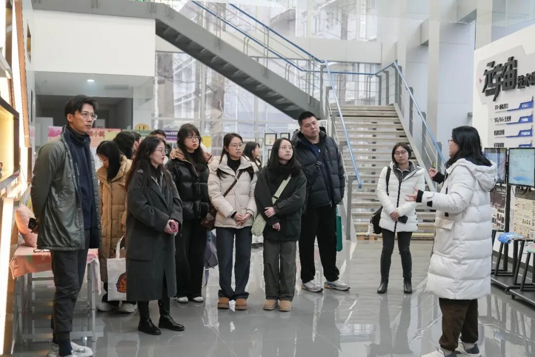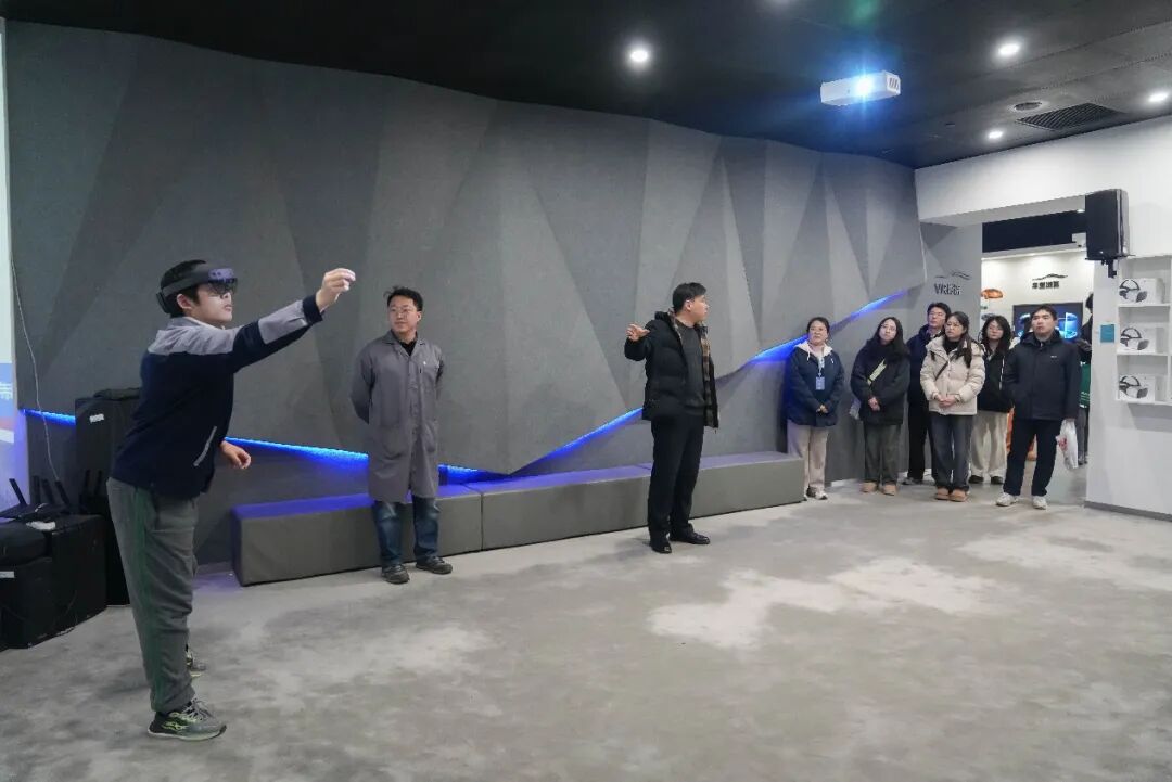 干部们着重考察了学院的5G数字创意实训中心,该中心是第48届世界技能大赛数字交互媒体设计项目中国集训基地的核心支撑,拥有国内领先的实时虚拟拍摄棚、AI内容生成实验室及XR沉浸式开发平台等设施。“在今年9月的国赛中,我们的选手周家翔在数字交互媒体设计项目中脱颖而出,成功入选国家集训队,备战本届世赛。他的成长轨迹,也深刻体现了我们基地将5G高速传输、实时渲染、AI辅助创作等前沿技术模块,系统性融入日常教学与比赛训练的成果。” 数字创意系部主任刘迎春介绍道。双方还就如何将5G、AI等前沿技术深度融入世赛标准训练模块,培养符合国际竞赛要求的数字技能人才展开了具体深入的探讨。