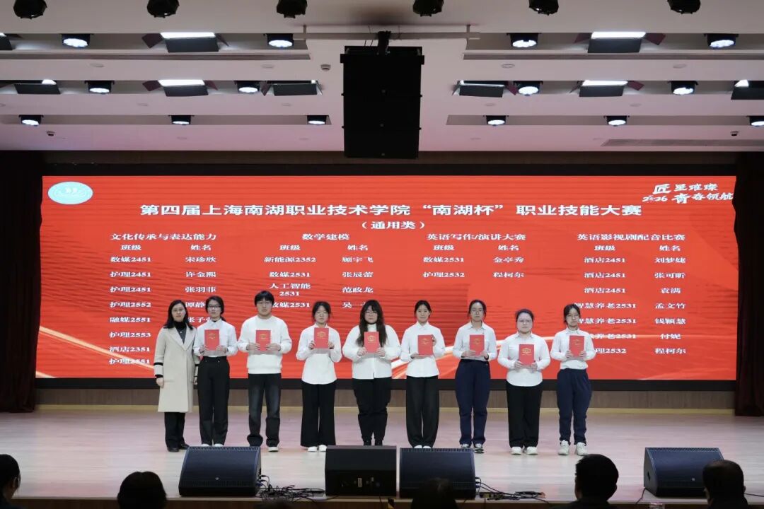 1月23日,上海南湖职业技术学院“匠星璀璨 青春领航”2025年度优秀学生颁奖典礼在5G实训中心二楼会议室隆重举行。虹口区教育局副局长、学院党委书记李琰,学院党委副书记、院长朱建柳,学院党委副书记、纪委书记赵锋,学院副院长朱清清、胡跃忠,学院工会主席、组织人事处主任杨柳出席本次活动,相关职能部门及各系部负责人、中高职贯通联合体单位代表、家长代表与获奖学生代表齐聚一堂,共同见证青春荣耀时刻,共话成长成才之路。