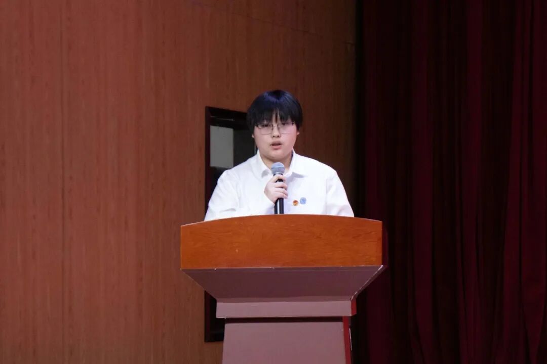 智能网联2351班王诗琪作为国家奖学金获奖代表发言。在发言中,她分享了自身专业成长历程,通过优化工作流程、弥补自身短板积累经验,积极参与校、市、全国及国际多级别赛事并斩获多项成果。她感恩学校提供的优质平台、师长的悉心指导及亲友的坚定支持,勉励全体学子持续奋进,以不懈坚持收获成长与进步。