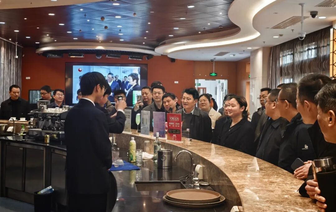 会前,一行人实地参观了学院5G数字创意实训中心、国际邮轮实训基地、护理实训中心及汽车运用与维修开放实训中心。在国际邮轮实训基地,校长们不仅了解了智慧商旅系部相关专业的教学体系,还现场观摩了学生的调酒课程展示,聆听学生对调酒作品的创作寓意与文化内涵的分享,学生们展现了扎实的技能功底与良好的职业素养,赢得安徽校长们的阵阵掌声。各实训基地以真实场景、先进设备与教学做一体化设计,生动呈现了学院“厚德 精技 善思 笃行”的育人理念与产业对接的办学特色,使一行人对学院的实训体系建设与人才培养模式有了更为直观和深刻的理解。