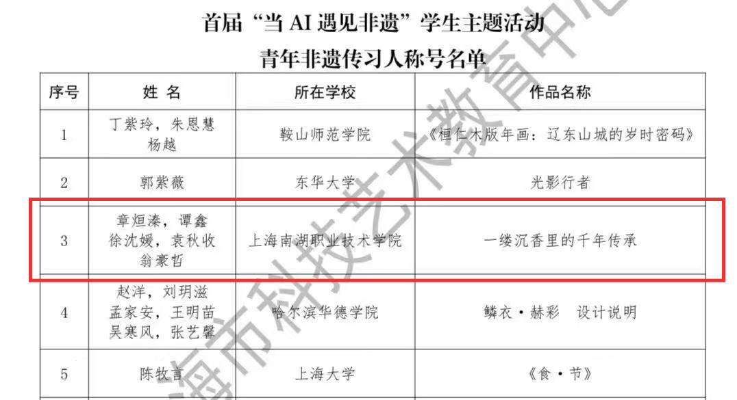 此次获奖不仅是对南湖师生专业能力与创新精神的充分肯定,更是学校深耕职业教育、推动产教融合的又一丰硕成果。未来,上海南湖职业技术学院将继续深化教育教学改革,鼓励更多师生投身非遗传承与科技创新实践,探索“AI+非遗”的更多可能,培养更多兼具文化素养与技术能力的高素质人才,为中华优秀传统文化的活态传承贡献“南湖力量”!