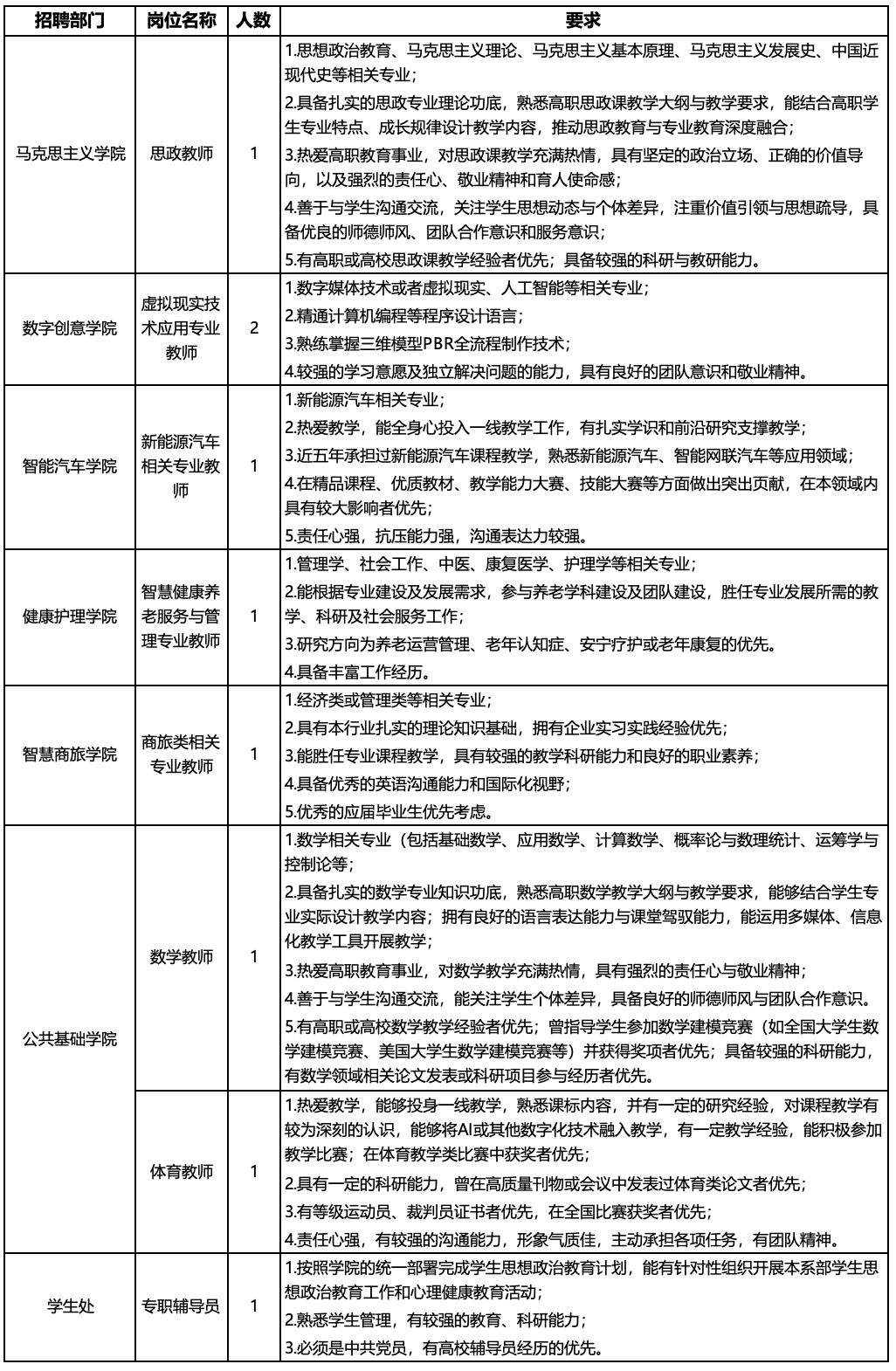 专业匹配,有良好的专业能力、授课能力及科研能力,副高及以上职称、应届生优先。