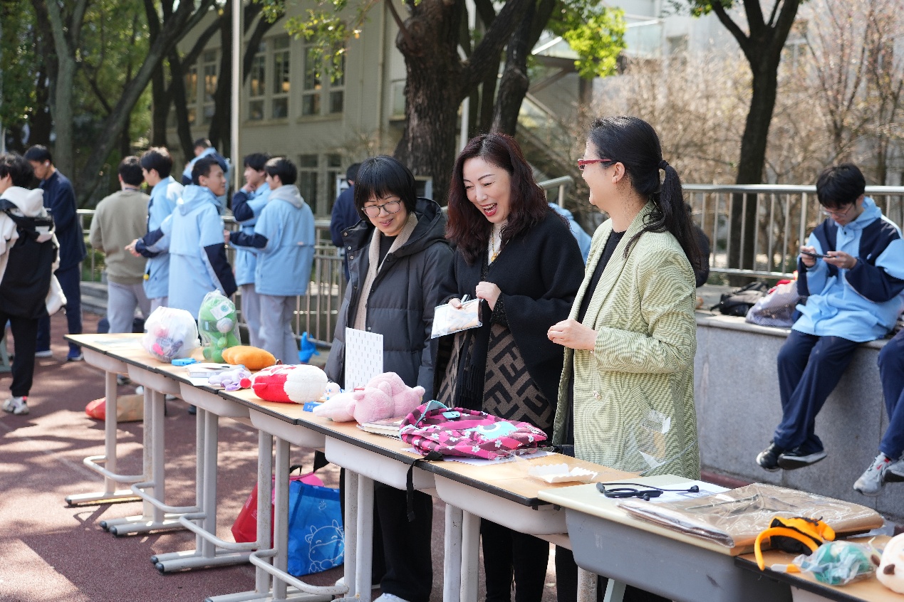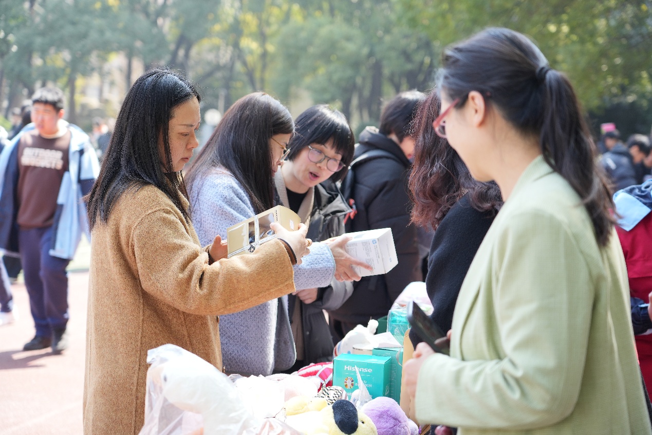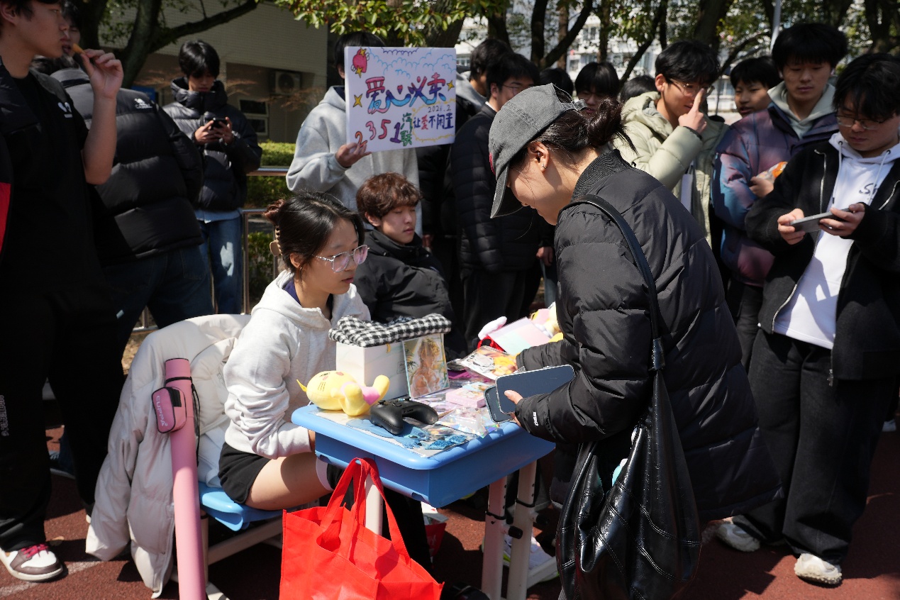 活动现场秩序井然,各类摊位规范布置。学院团委、学生会精心筹备了手工饰品、文创摆件等义卖物品,志愿者们积极向师生介绍展品、解答疑问,同步宣传雷锋精神与公益理念,引导大家踊跃参与爱心传递。教师工会也专门设立摊位,教师们现场与学生亲切互动,带动广大师生共同投身公益实践。各班摊位特色鲜明,同学们积极准备各类义卖物资,以实际行动传递爱心。