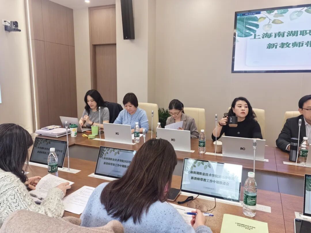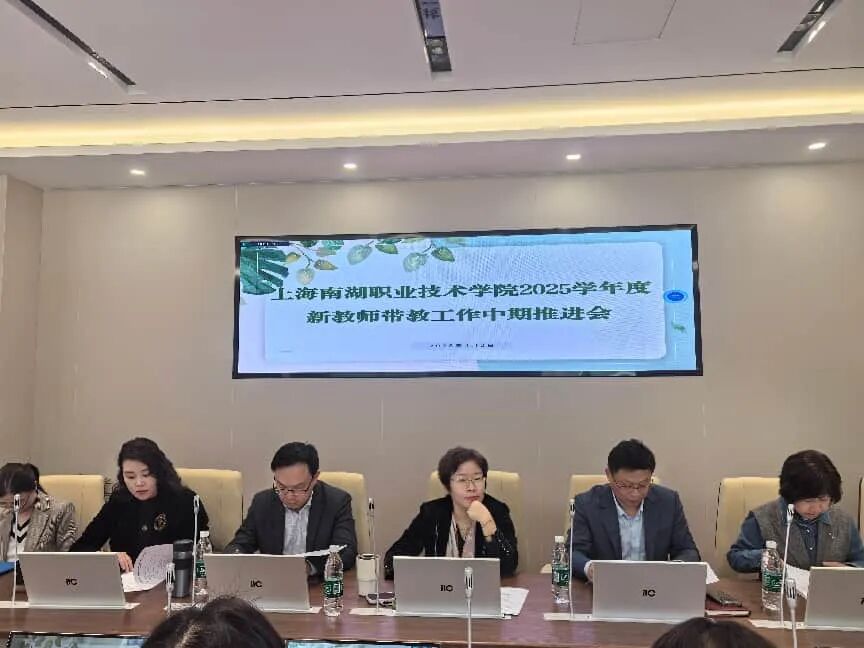 2026年4月2日下午,上海南湖职业技术学院2025学年度新教师带教工作中期推进会召开。学院党委书记朱建柳,院长方林中,党委副书记、纪委书记赵锋,副院长朱清清、陈莉莉,工会主席、组织人事处主任杨柳等院级领导出席,教工部主任尚晓萍主持会议,5位新教师及教育教学带教教师,各系部与职能部门负责人齐聚一堂,总结前期带教成效、梳理成长短板、明确发展方向,以精准指导与暖心关怀,为青年教师职业成长保驾护航。