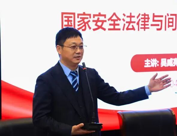 讲座伊始,吴咸亮老师以贴近生活的视角破除“国家安全与己无关”的误区,引导师生树立“国家安全无小事”的观念。随后,吴老师梳理了境外势力常见的渗透窃密形式,重点讲解以学术交流、网络兼职等非法信息搜集行为,提醒师生时刻保持警惕、明辨是非。在法律解读环节,吴老师详细阐释《中华人民共和国国家安全法》《中华人民共和国反间谍法》核心要义,介绍4・15全民国家安全教育日的重要意义,引导师生知法、懂法、守法、用法,明确行为边界与法律责任。