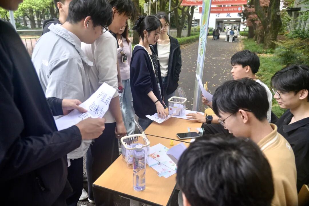 “拼图达人”“校史知识快答”趣味爆棚,同学们边玩边学,在轻松互动中重温南湖五年成长足迹;鲁班锁、乒乓球杠铃等技能挑战超吸睛,大家沉着应战、全力闯关,欢呼声不断,尽显少年意气与青春力量;纸板插花区温柔治愈,大家静心手作,把春日美好与五周年暖意定格成独属于自己的浪漫小物。盖满印章的打卡手册、满载心意的惊喜好礼、随处可见的笑脸与欢声,让每一位师生都沉浸式感受学院“五周年高质量发展月”氛围,归属感与自豪感一路飙升!