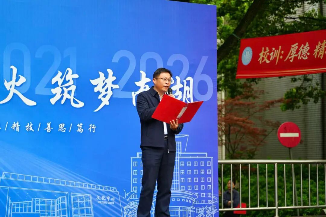 “五载薪火,筑梦南湖”主题升旗仪式为五周年高质量发展月奏响庄严开篇,全体师生列队肃立,在雄壮国歌声中致敬祖国、回望学院五载与时代同频、与城市共进的奋进征程,学院领导共同上台正式启动五周年高质量发展月系列活动。