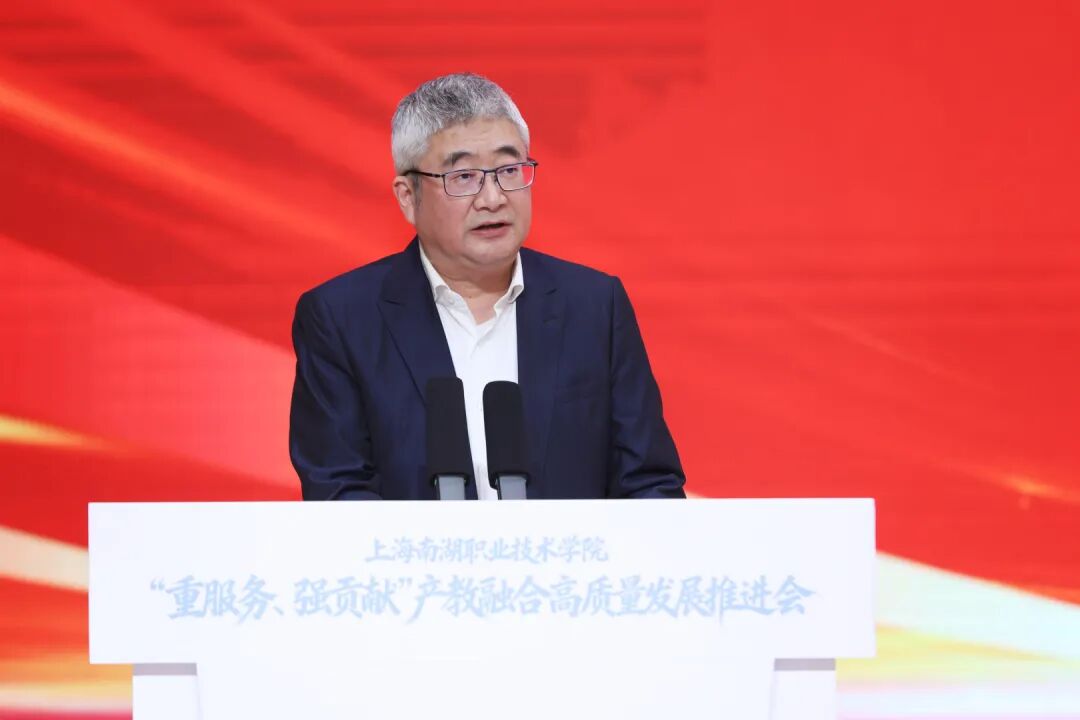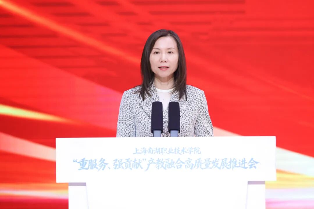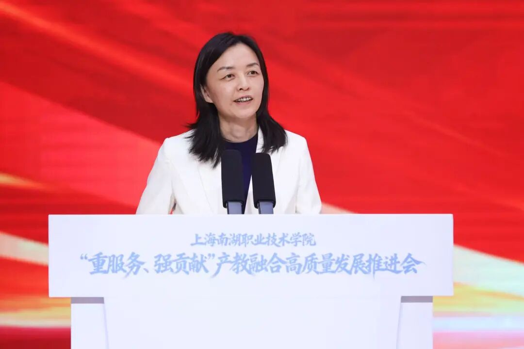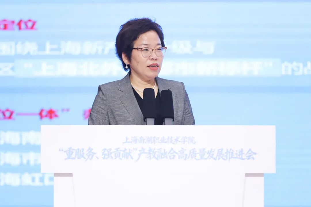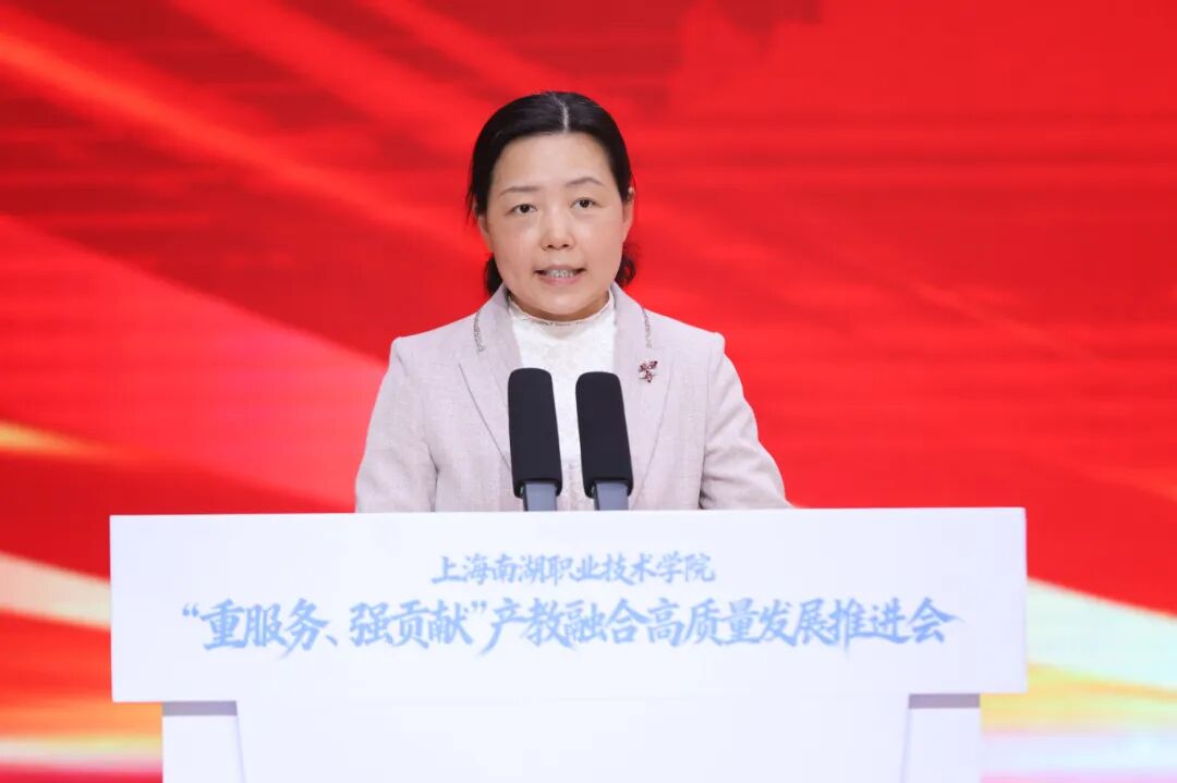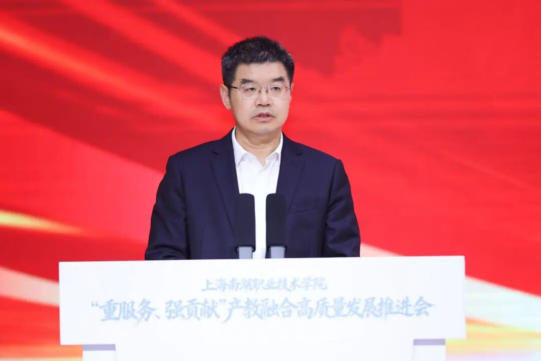 市教委一级巡视员陈睦对推进会召开表示热烈祝贺。他指出,上海正推动高职教育全面适配产业发展,构建“专业布局围着需求转、人才培养跟着产业走、办学质量盯着就业评”的现代职教模式。他希望南湖职院:一要聚焦“重服务”,在精准对接产业需求上展现新作为,形成一批产教融合的标杆项目,让学院的人才培养始终与产业脉搏同频共振。二要突出“强贡献”,在提升人才培养质量上实现新突破,通过深化人才培养模式改革,源源不断培养高素质技能人才。三要注重“创品牌”,在新型高职示范引领上打造新标杆,以更加昂扬的斗志在“重服务、强贡献”的征程上阔步前行,为上海加快建设具有世界影响力的社会主义现代化国际大都市贡献更多职教智慧和力量。