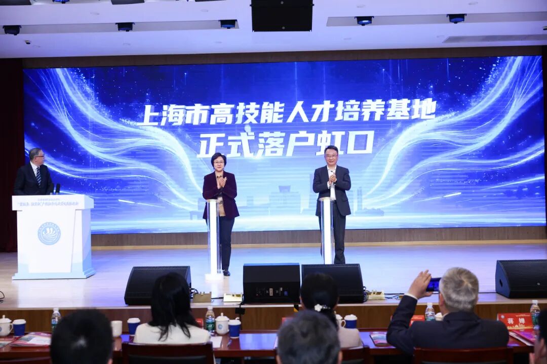 虹口区副区长章维、上海市人社局二级巡视员、职业能力建设处处长李鹰共同启动上海市高技能人才培养基地落户虹口仪式。该基地落地是对学院服务社会、培养高端技能人才能力的官方认可与重要赋能,标志着学院在构建多元化、高层次产教融合平台方面迈出了关键一步。