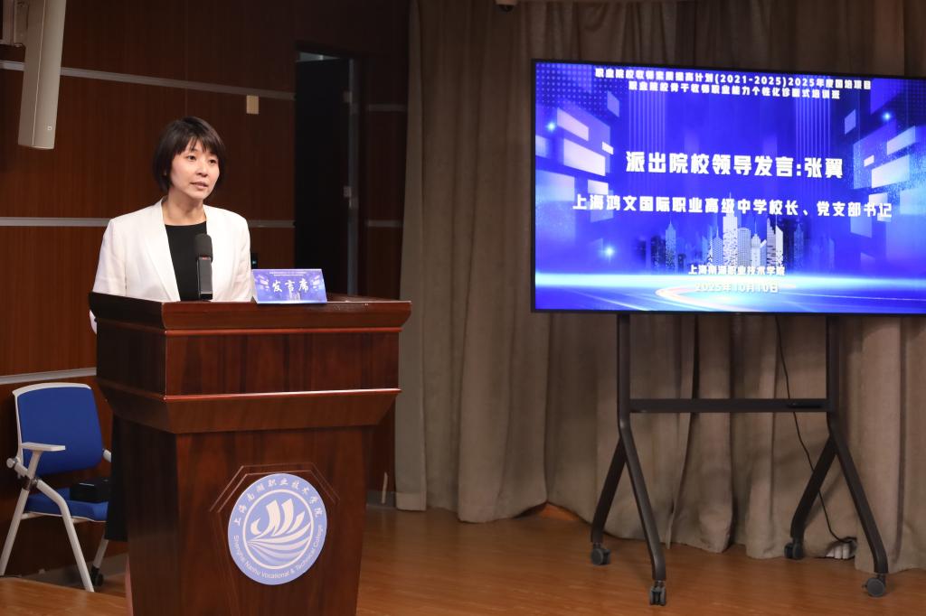 上海鸿文国际职业高级中学党支部书记、校长张翼作为派出院校领导代表发言。她感谢南湖职院精心组织本次培训,并表示将持续支持教师发展,共同推进职业院校教学改革与创新。