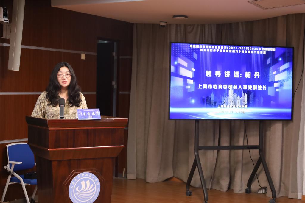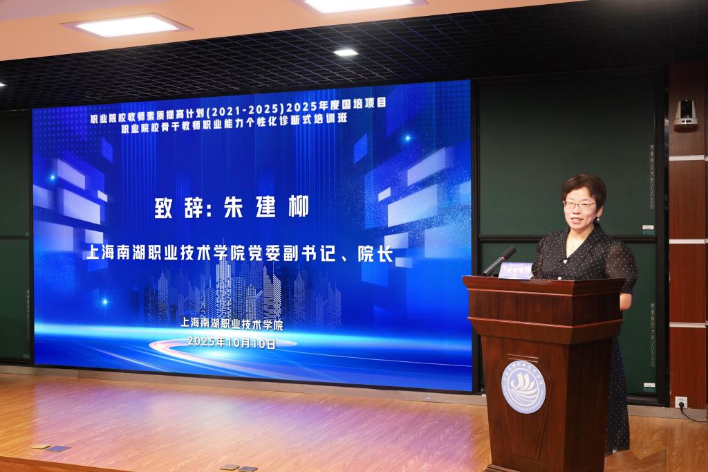 仪式伊始,主持人介绍了与会领导和嘉宾。随后,上海南湖职业技术学院党委副书记、院长朱建柳作为项目实施单位领导致辞。她充分肯定本次培训在推动教师专业成长和教学创新能力提升方面取得的实效,并对参训教师顺利完成学业表示祝贺,希望大家将所学转化为推动校本实践的新动力。