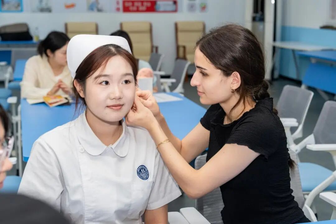 10月17日下午,上海南湖职业技术学院与德国不来梅欧洲中心学校联合举办中医康复适宜技术课程交流活动。两国师生以中医“耳穴压豆法”为核心,展开深度技术对话与文化交流,为中医康护适宜技术国际化输出注入新活力。活动现场,南湖职院健康护理系护理专业主任曲娜负责课程讲解。她用通俗的语言阐释耳穴压豆的核心原理——以王不留行籽刺激耳郭腧穴,借助经络系统调节脏腑气血、平衡阴阳,实现治病调身的效果,让德国师生快速理...