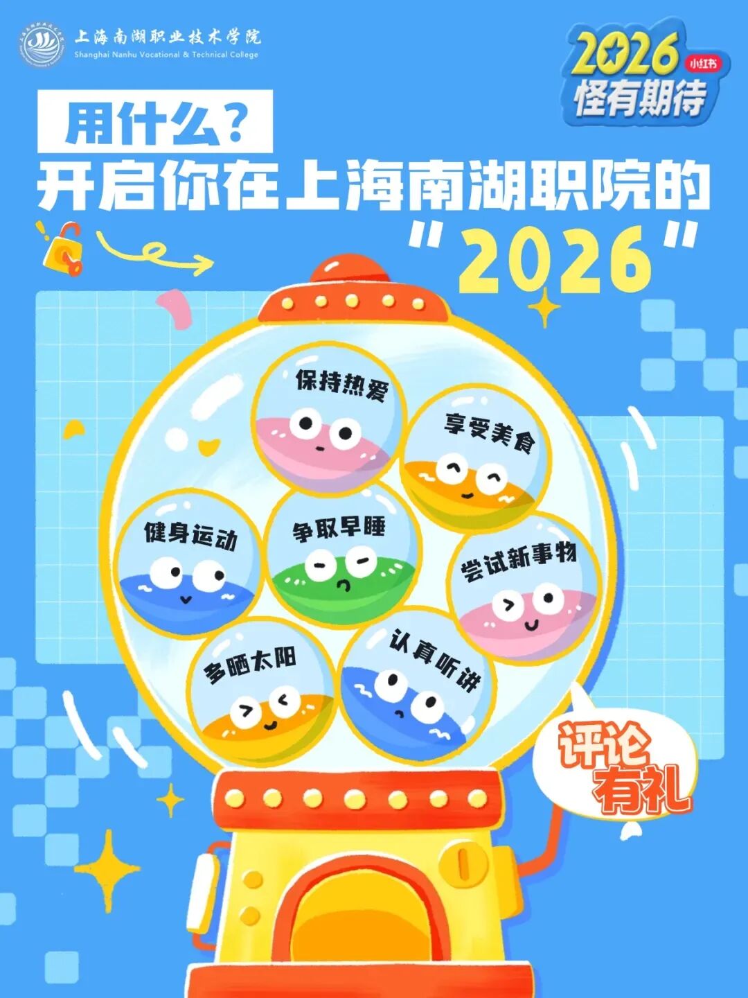 2026已经启幕,你的新年画卷,准备用什么来落笔?在上海南湖职业技术学院,新的一年远不止是日历翻页。它是一个全新的实训项目、一次勇敢的赛场尝试、一群志同道合的伙伴,或是一个脱胎换骨的自己📣这里,正是你的全新起点【在上海南湖职院,用____开启2026!】我们为你提供一些“南湖式”的参考答案:👇用一本全新的「职业技能等级证书」开启2026!把知识变成硬核实力,让未来的简历闪闪发光用一枚「技能大赛」的奖牌开启2...
