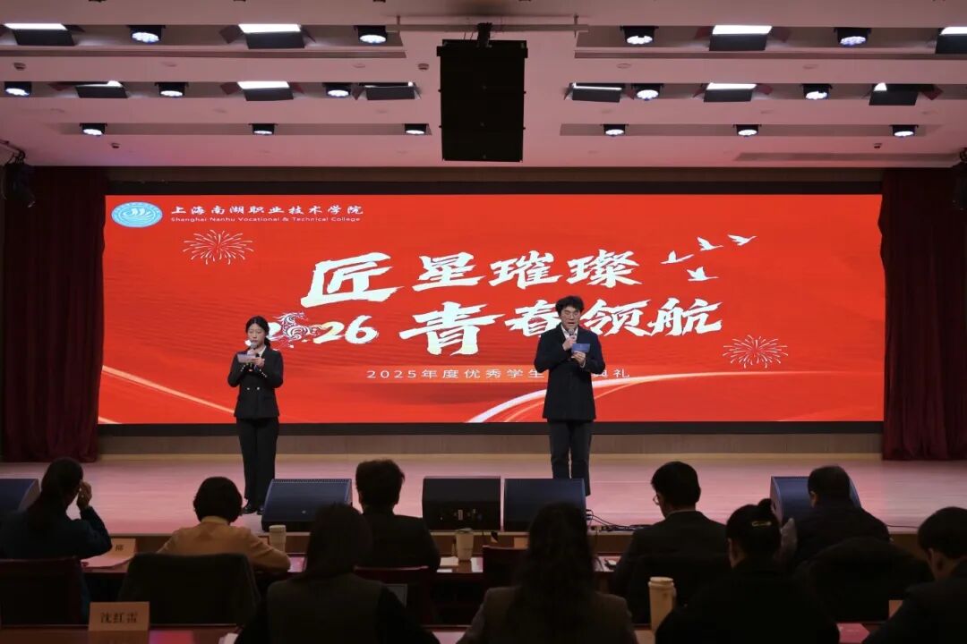 2026-01-271月23日,上海南湖职业技术学院“匠星璀璨 青春领航”2025年度优秀学生颁奖典礼在5G实训中心二楼会议室隆重举行。虹口区教育局副局长、学院党委书记李琰,学院党委副书记、院长朱建柳,学院党委副书记、纪委书记赵锋,学院副院长朱清清、胡跃忠,学院工会主席、组织人事处主任杨柳出席本次活动,相关职能部门及各系部负责人、中高职贯通联合体单位代表、家长代表与获奖学生代表齐聚一堂,共同见证青春荣耀时刻,共话成长成才之...